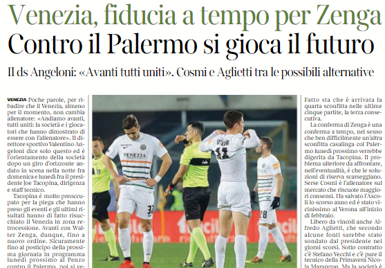 La Nuova Venezia: “Il Venezia prende tempo. Panchina traballante. Rogg: «Il presidente è preoccupato»”