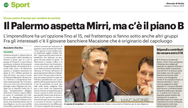 L'edizione odierna de "Il Giornale di Sicilia" ha riportato le ultime notizie che riguardano il possibile passaggio di proprietà del...