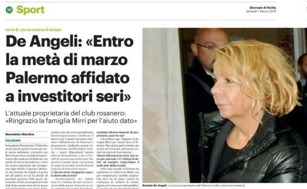 L’edizione odierna del “Giornale di Sicilia”, riporta l’intervista realizzata all’attuale proprietaria del Palermo Daniela De Angeli. I 2,8 milioni immessi...