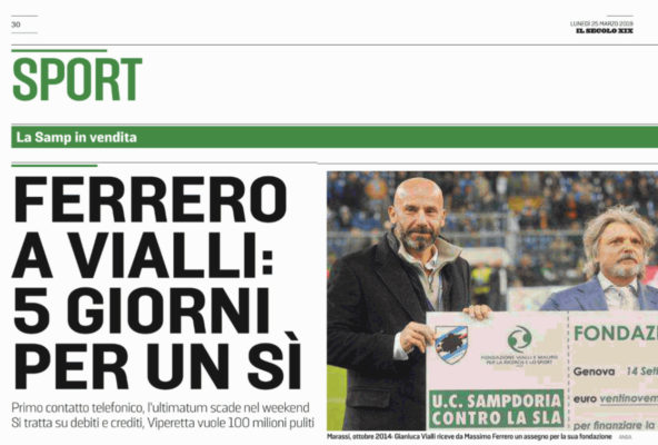 Adesso ci siamo. La cessione della Sampdoria entra in una settimana cruciale. Entro i prossimi cinque giorni, al massimo entro...