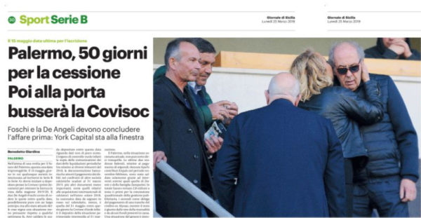 L'edizione odierna del "Giornale di Sicilia", parla delle trattative per la cessione del Palermo. Il fondo statunitense York Capital è...