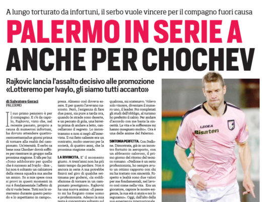 Corriere dello Sport: “Palermo in serie A anche per Chochev: «Lotteremo per Ivaylo, gli siamo tutti accanto»