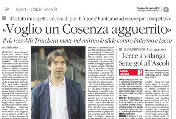 L'edizione odierna de "Il Quotidiano del Sud" ha riportato le parole del ds del Cosenza che rilancia la sua squadra...