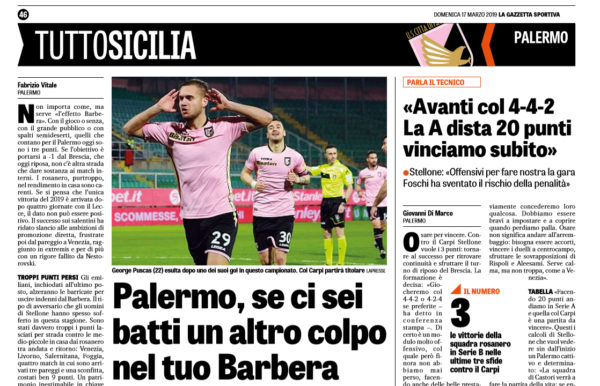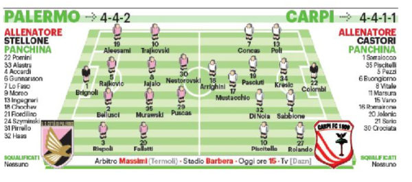 Gazzetta dello Sport: “Palermo d’assalto con il Carpi. Le probabili formazioni”