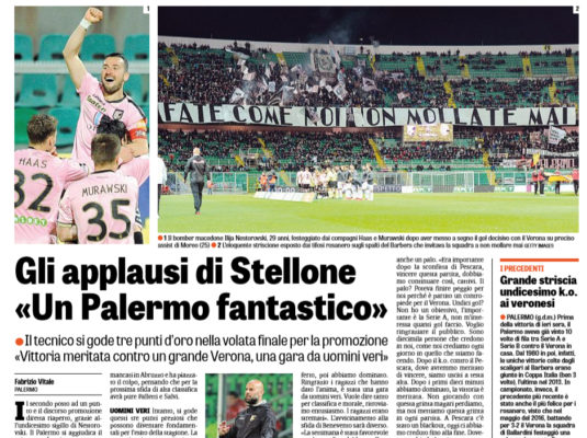L'edizione odierna della "Gazzetta dello Sport" parla delle vittoria di ieri del Palermo e riporta anche le parole del tecnico...