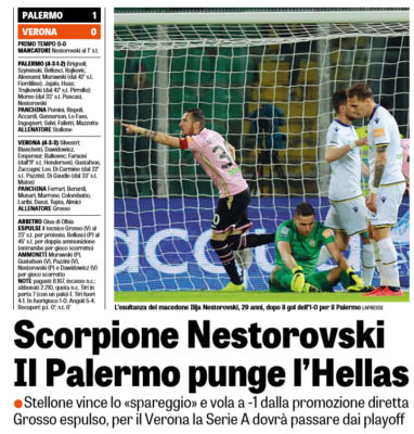 L'edizione odierna della "Gazzetta dello Sport", parla della vittoria di ieri del Palermo contro l'Hellas Verona. Il Palermo adesso è...