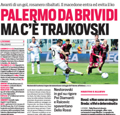 "Palermo da brividi, ma c'è Trajkovski" così titola l'edizione odierna de "Il Corriere dello Sport" in riferimento alla sfida di...
