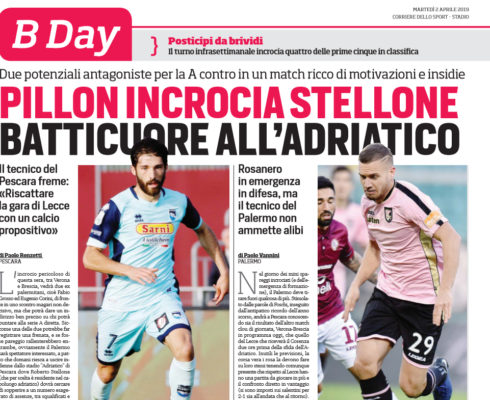 Corriere dello Sport: “Pillon incrocia Stellone. Batticuore all’Adriatico”