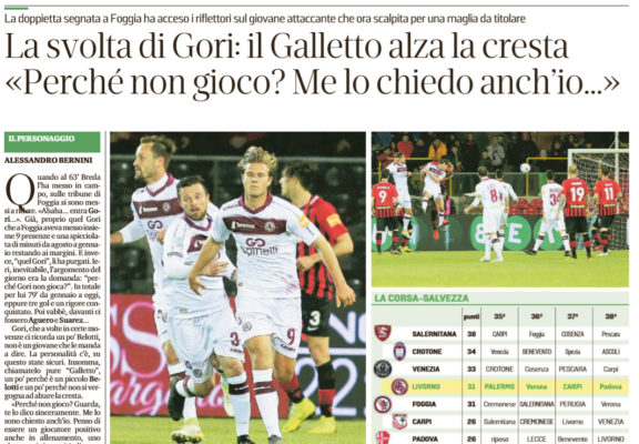 L'edizione odierna de "Il Tirreno" si sofferma sull'andamento del Livorno, trascinato dal giovane Gori. E adesso si prospetta la sfida...