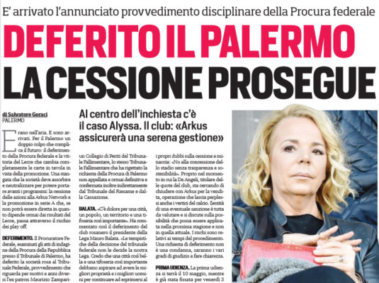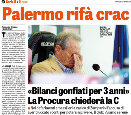 Gazzetta dello Sport: “Palermo rifà crac: «Bilanci gonfiati per 3 anni». La Procura chiederà la C”