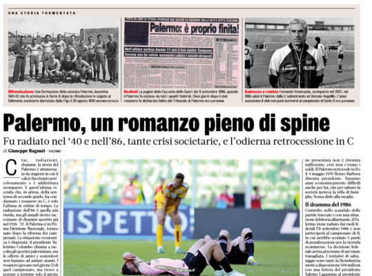 L'edizione odierna della "Gazzetta dello Sport" ripercorre la storia del Palermo, fatta anche di crac, radiazioni e drammi. La radiazione...