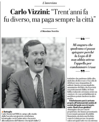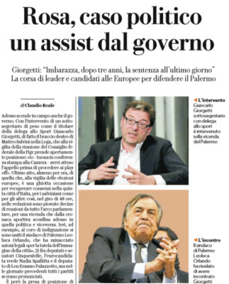 L'edizione odierna della "Repubblica" parla di "caso politico" relativo alla vicenda del Palermo. Ieri c'è stato l'intervento del sottosegretario alla...