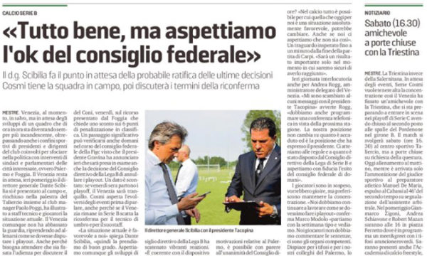 L'edizione odierna de "Il Gazzettino" riporta diverse dichiarazioni in casa Venezia in merito al caos della serie B degli ultimi...