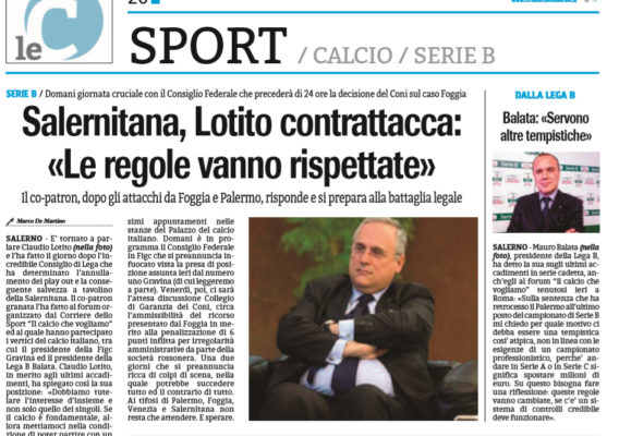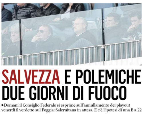Il Mattino di Salerno: “Salvezza e polemiche, due giorni di fuoco. B torna a 22?”