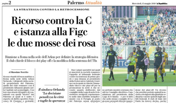 L'edizione odierna de "La Repubblica" approfondisce le dinamiche che riguardano la retrocessione del Palermo in Serie C da parte del...