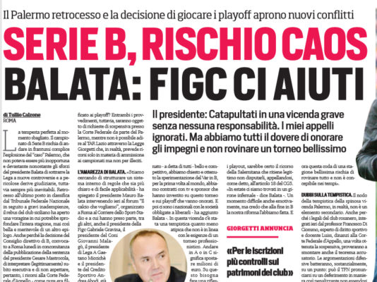 Corriere dello Sport: “Serie B, rischio caos Balata: Figc ci aiuti”