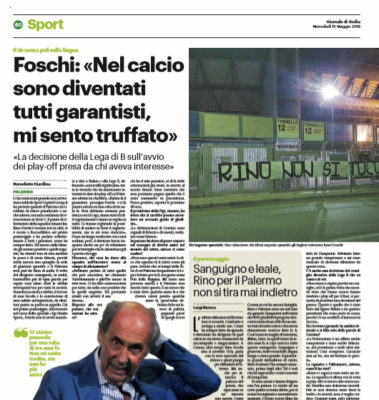 L'edizione odierna de "Il Giornale di Sicilia" ha deciso di riportare alcune delle dichiarazioni rilasciate da Rino Foschi in merito...
