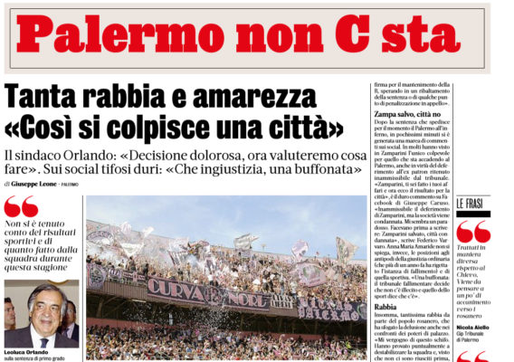 L'edizione odierna della "Gazzetta dello Sport" analizza le dinamiche che hanno spedito il Palermo in Serie C. I rosanero sono...