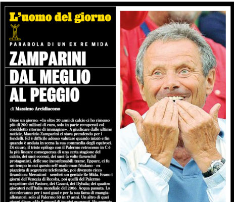 L'edizione odierna della "Gazzetta dello Sport" si sofferma sulla parabola discendente di Zamparini. Disse un giorno: «In oltre 20 anni...