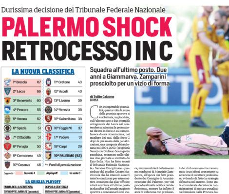 L'edizione odierna della "Gazzetta dello Sport" approfondisce le dinamiche che hanno spedito il Palermo in Serie C. Se non ci...