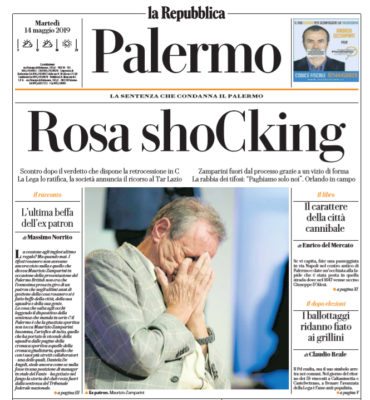 L'edizione odierna de "La Repubblica" approfondisce la drammatica situazione del Palermo. Ultimo posto della classifica e retrocessione in serie C....