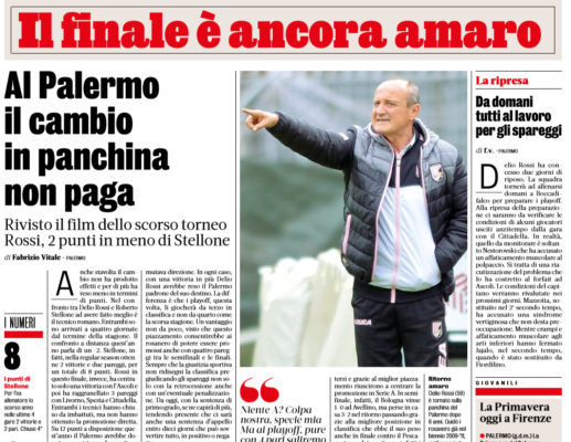 L'edizione odierna della "Gazzetta dello Sport", parla del finale di stagione del Palermo. Il cambio in panchina non ha prodotto...