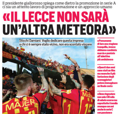 L'edizione odierna del "Corriere dello Sport" fa il punto della situazione in casa Lecce dopo la promozione in serie A....