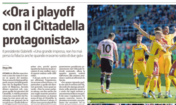L'edizione odierna de "Il Mattino - Padova" riporta le dichiarazioni di Andrea Gabrielli, presidente del Cittadella, raccontando la conquista dei...