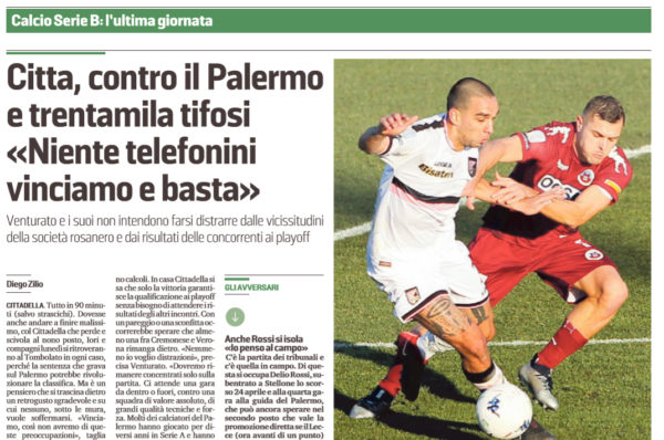 L'edizione odierna de "Il Mattino" si sofferma sul momento del Cittadella, atteso dall'ultima sfida contro il Palermo, decisiva ai fini...