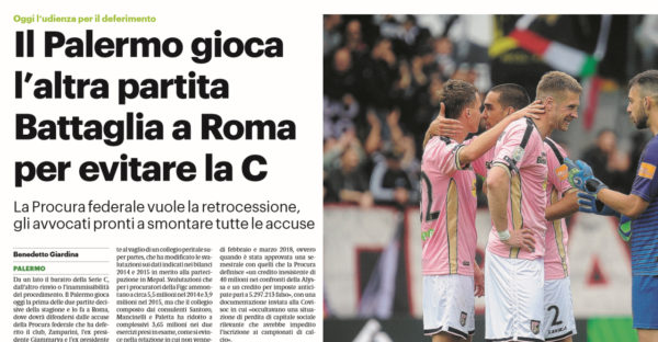 L'edizione odierna del "Giornale di Sicilia" approfondisce la battaglia giudiziaria in cui è stato coinvolto il Palermo, a causa del...