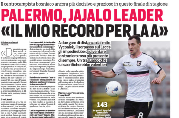 L’edizione odierna del “Corriere dello Sport”, riporta un’intervista realizzata al centrocampista del Palermo Mato Jajalo. Sabato ci sarà una partita...