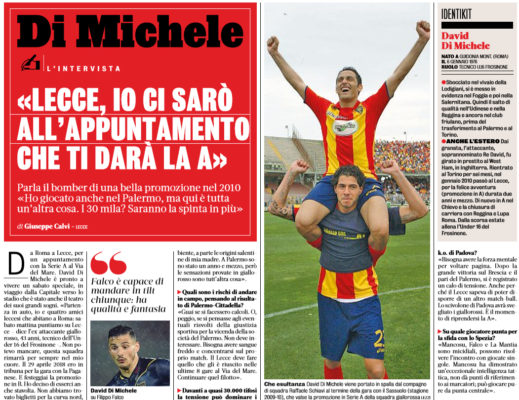 L'edizione odierna della "Gazetta dello SPort" riporta l'intervista realizzata a David Di Michele. Da Roma, arriverà fino a Lecce per...