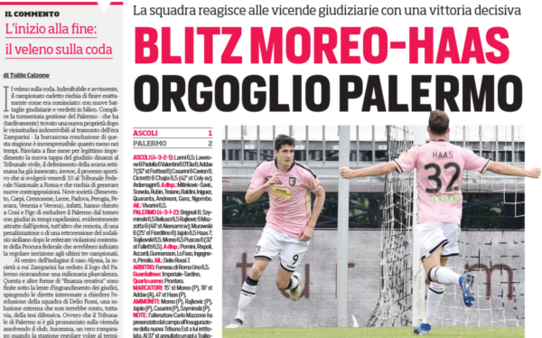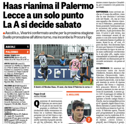 "Haas rianima il Palermo. Lecce a un solo punto. La A si decide sabato", titola così l'edizione nazionale de "La...