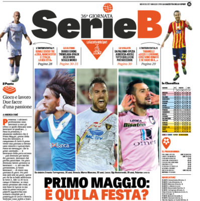 L'edizione odierno della "Gazzetta dello Sport", fa il punto di giornata relativo al prossimo turno di serie B. Brescia e Lecce...