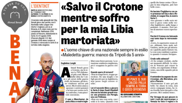 Ahmad Benali gioca a Crotone, ma la testa è a 700 chilometri più a sud. Manca dalla Libia da 5...