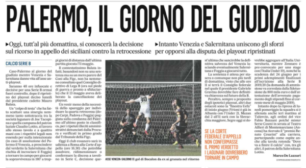 Le Cronache di Salerno: “Palermo in Corte d’Appello, la Salernitana aspetta e spera”