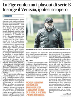 L'edizione odierna de "Il Gazzettino" approfondisce il caos scaturito dal ripristino dei playout di Serie B. Venezia e Salernitana non...