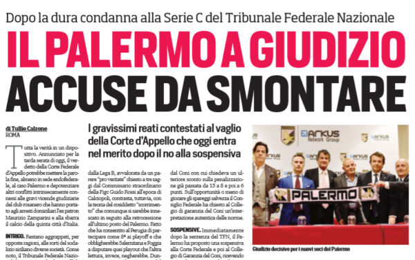Gazzetta dello Sport: “Appello Palermo e «parere» playout. Si sceglie fra conferme e ribaltoni”