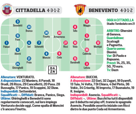 L'edizione odierna del "Corriere dello Sport" analizza la semifinale di andata dei play-off tra Cittadella e Benevento. Bucchi, tecnico dei...