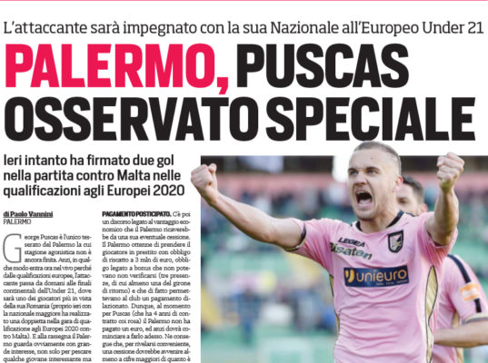 L'edizione odierna de "Il Corriere dello Sport" ha analizzato la formula grazie al quale il Palermo ha potuto prendere Puscas...