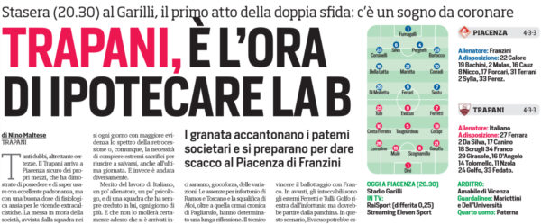 L'edizione odierna del "Coriere dello Sport" parla della sfida decisiva del Trapani impegnato nella lotta playoff di serie C. I...