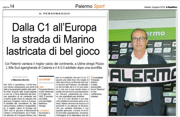 L'edizione odierna della "Repubblica" parla del profilo di Pasquale Marino, nuovo tecnico del Palermo. Nel 2001 il quotidiano l'Unità fece...