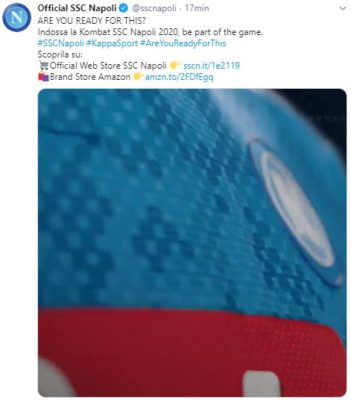 Il Napoli, tramite il proprio profilo Twitter, ha svelato la prima maglia per la stagione 2019-2020. Di seguito il tweet...