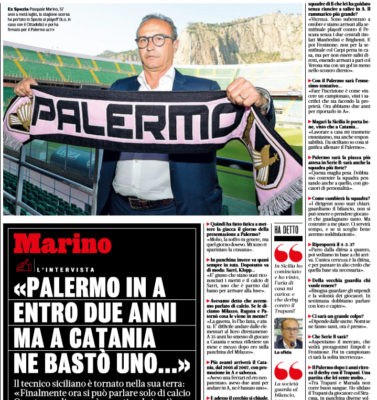 L'edizione odierna della "Gazzetta dello Sport" riporta un'intervista a Pasquale Marino, allenatore del Palermo. Ecco quanto affermato. Cosa ha pensato...