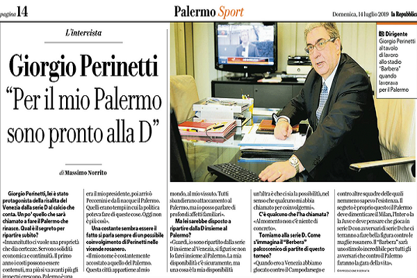Intervistato dall'edizione odierna de "La Repubblica" Giorgio Perinetti si è espresso in merito alla possibilità di far ritorno al Palermo:...