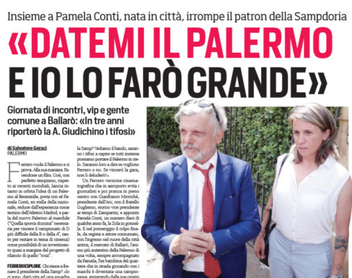L'edizione odierna del "Corriere dello Sport" approfondisce la visita a Palermo di Massimo Ferrero. Il presidente blucerchiato lancia in orbita...