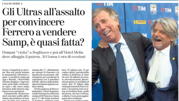 La pazienza dei tifosi della Sampdoria nei confronti di Ferrero è giunta ai minimi termini. Sembra ormai tutto fatto per...