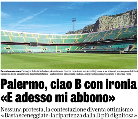 L'edizione odierna della "Gazzetta dello Sport" si sofferma sulla reazione della tifoseria rosanero al rigetto della domanda di iscrizione del...