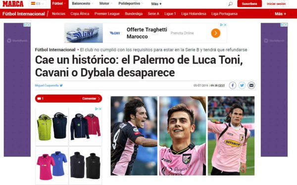 La tragica fine dell'U.S. Città di Palermo ha fatto scalpore anche all'estero. Il noto quotidiano spagnolo "Marca" dedica uno spazio...