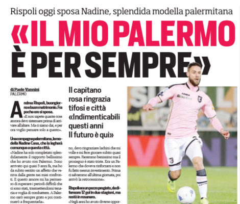 Corriere dello Sport: “Rispoli si sposa «Il mio Palermo è per sempre»”